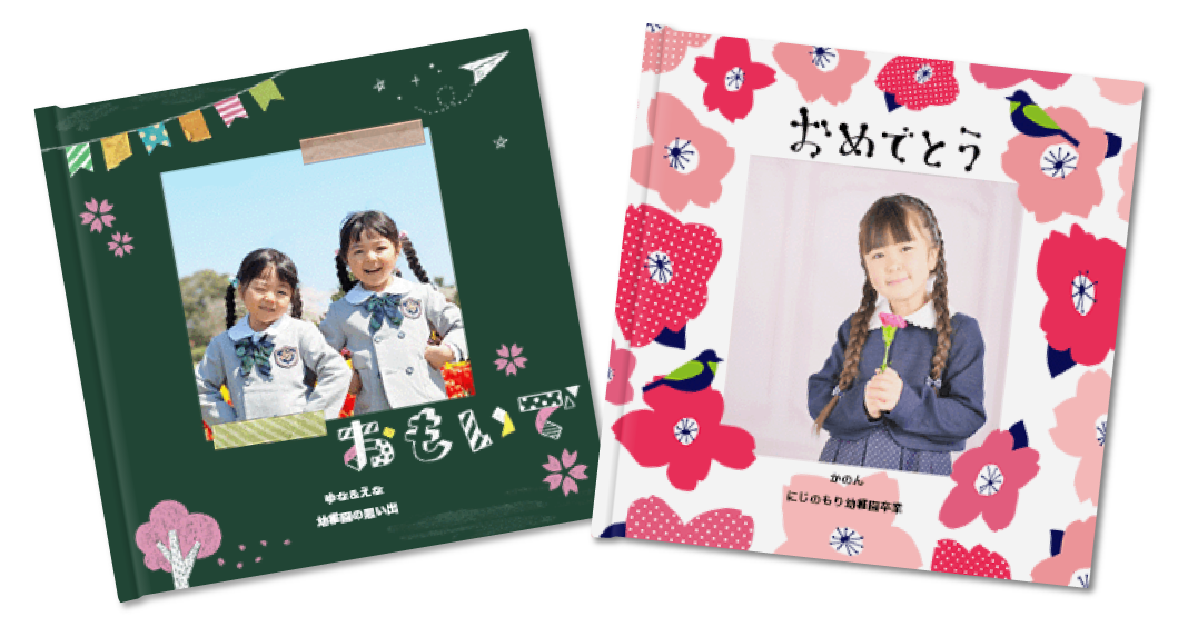 また、一部商品では写真を入れるだけで作れるイラストフレーム付きのデザインなどもご用意しております。